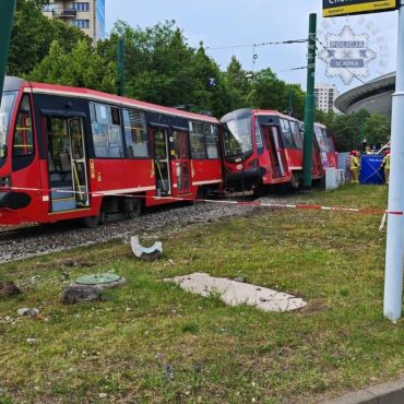 Wypadek tramwaju w Katowicach. W pobliżu ronda generała Ziętka z torów wypadł tramwaj. Są ranni.