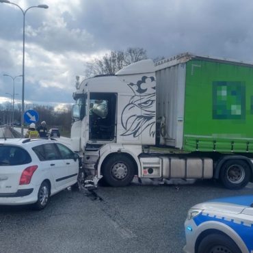 Wypadek na zjeździe z autostrady A1. W Szałszy zderzyły się ciężarówka i samochód osobowy. Przez wypadek są spore utrudnienia.